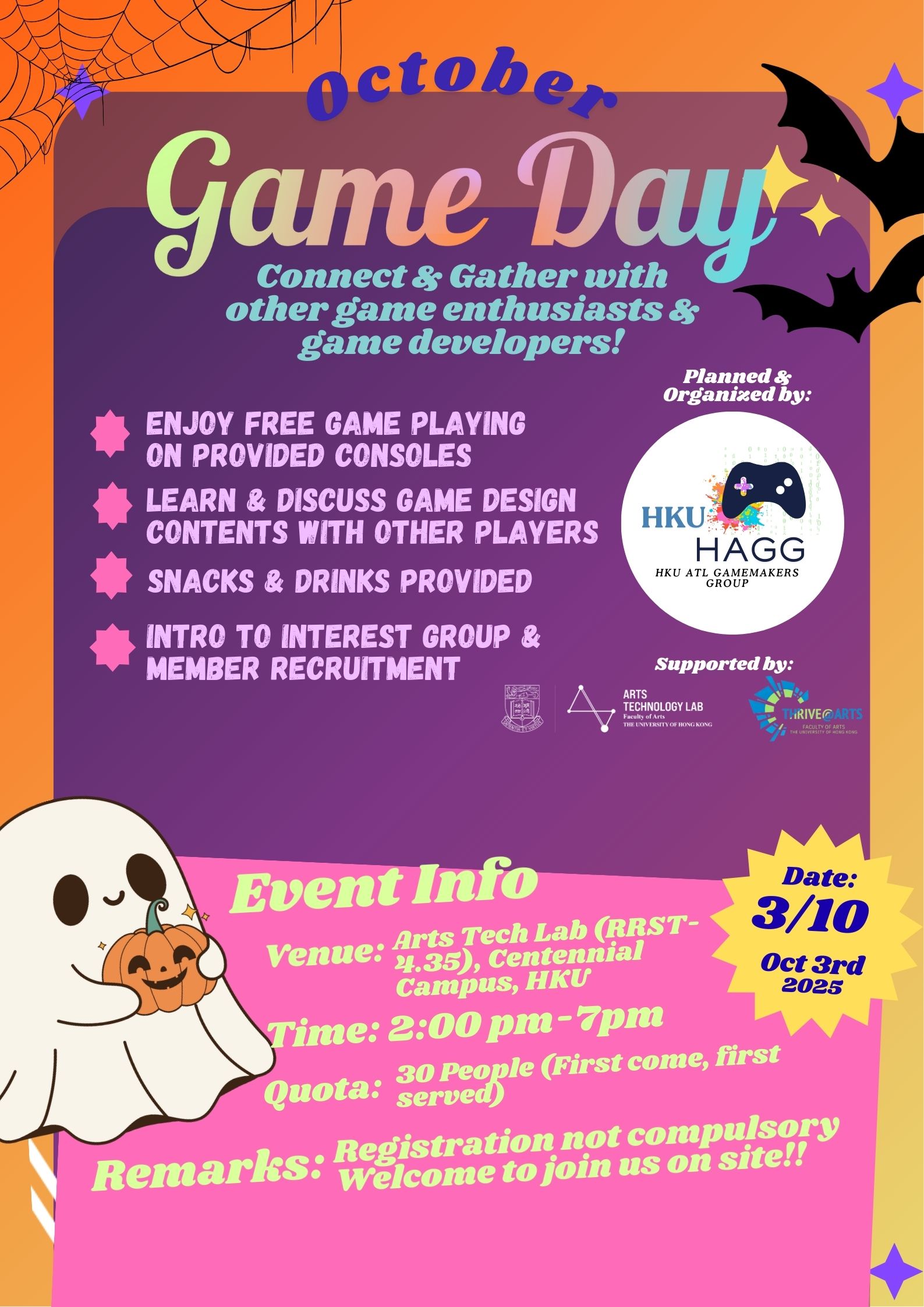 Get ready for an exciting afternoon of gaming and creativity! Arts Technology Lab and Faculty of Arts is hosting its Summer Game Day on October 3rd (Friday), and we’d love you to be part of it. Whether you’re into casual gaming, game design, or creation, there’s something here for you!